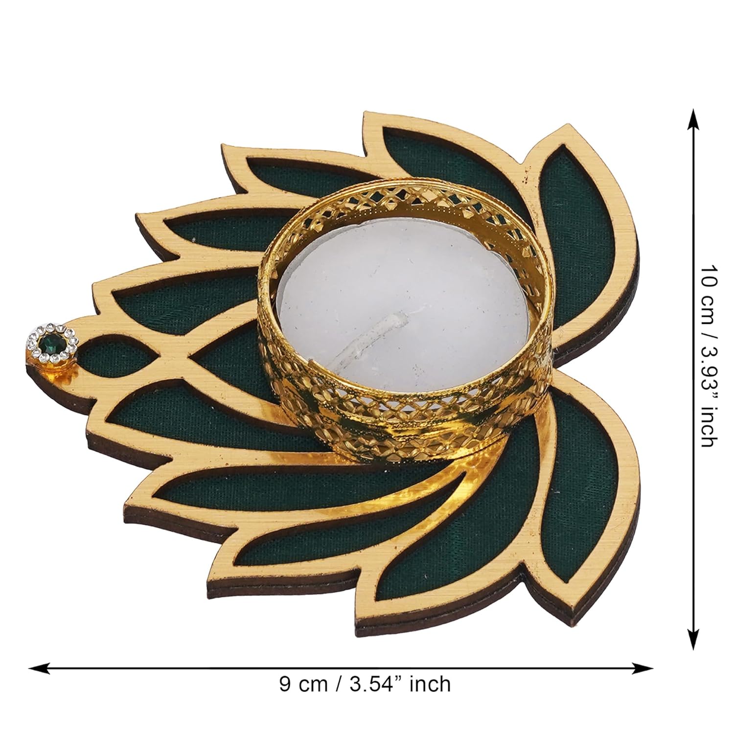 Package Content – One Golden and Green Beautiful Lotus Design Tea Light Candle Holders (Set of 2)