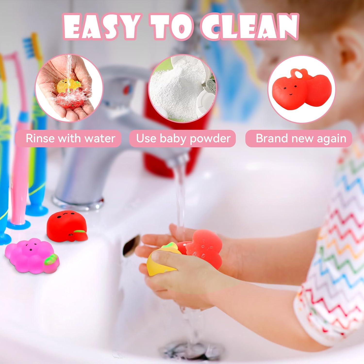 [Safety and Washable]These toys are made of safe, non-toxic, soft rubber material and can be washed to get clean.Products are not edible, children should play under adult supervision.
