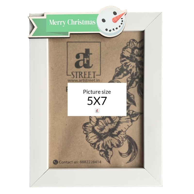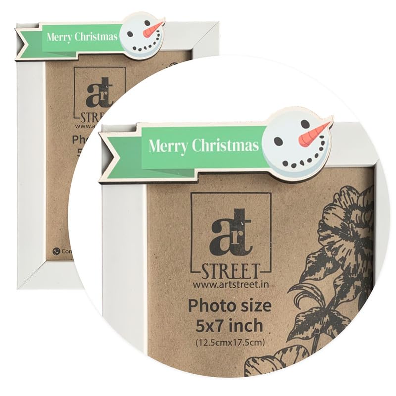 Art Street Merry Christmas Ribbon MDF Cutout Photo Frame, Christmas Gift For Friends, Family, Relatives, Gift For Brother, Sister, Mom, Dad, Christmas Photo Frame (White, 5×7 Inch)