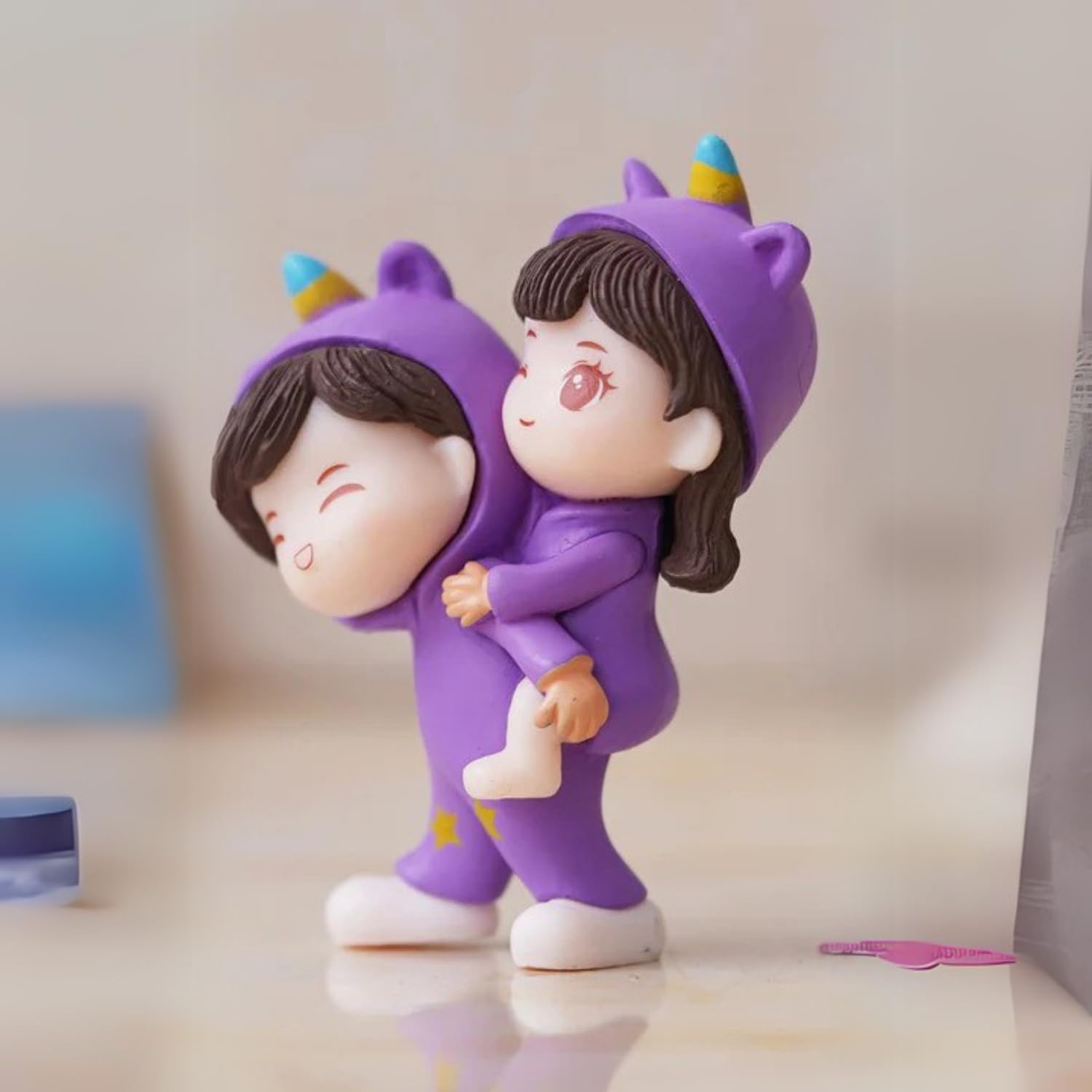 Place this mini couple on your car dashboard or office desk to brighten up your day. Its durable resin body withstands various environments while adding a charming visual touch.