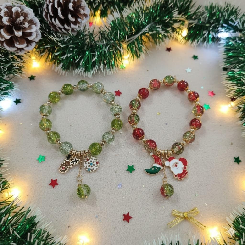 Generic Name : 2PCs Christmas Charm Bracelets Combo for Women & Girls – Vibrant Beaded Xmas Bracelet Set with Santa, Tree & Snowflake Charms | Holiday Gift Jewelry for Party, Family & Festive Wear