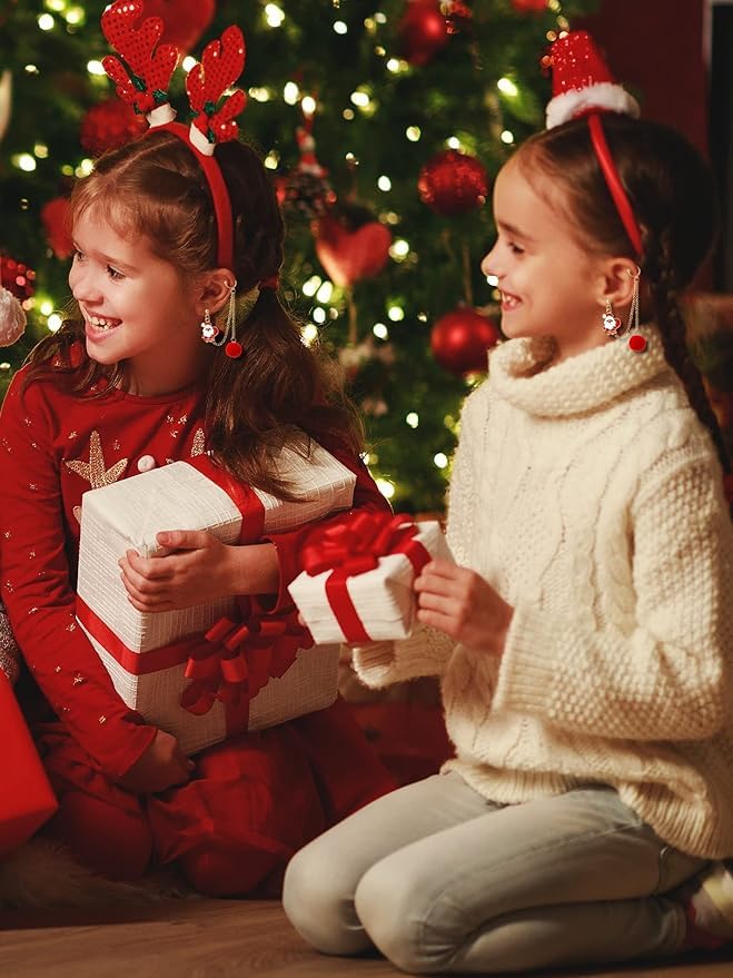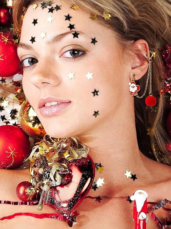 Add instant holiday cheer to your look with these El Regalo Christmas Cuff Chain Earrings with Pom Pom Tassel. Each pair features a colourful Christmas charm stud for the earlobe – available in three designs (Xmas Tree, Xmas Wreath or Santa Claus) – connected to a matching ear clip cuff by delicate gold-tone chains. A soft red pom-pom dangles at the end of the longest chain, creating a fun tassel effect that moves beautifully as you walk and dance. The festive red, green and white enamel charms and fluffy pom poms make these earrings perfect for Christmas parties, school celebrations, photoshoots, Secret Santa gifting or just adding a playful seasonal touch to your daily outfits. Designed for girls and women, these earrings are lightweight and comfortable enough for all-day wear. Style them with sweaters, dresses or party wear and let these cute Christmas cuff earrings become your go-to accessory all season long. They also make a thoughtful Christmas gift for daughters, nieces, sisters, friends and all the Christmas lovers in your life.
