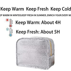 Durable oxford cloth and aluminum foil makes the food fresh. Start your life of the healthy diet. Very suitable for work, school, outdoor, travel and picnic with the family. Insulated Interiors: The inner layer of this bag has an insulated lining that helps in maintaining the temperature of the food inside. It can keep cold food cold and hot food hot for a few hours, unlike a plain lunch bag. Reinforced Grab Handles: The handles are reinforced with extra tough stitching to add more strength and durability to the bag. It is also provided with a metal zipper closure to keep the compartment of the bag closed securely. Versatile and Spacious: This bag has enough room to place a lunch box, water bottle, some tissues and even a fruit. It is versatile enough to be used as an accessory bag for babies and kids or even as a quick grocery bag.The inner layer of this bag has an insulated foil that helps in maintaining the temperature of the food inside. It can keep cold food cold and hot food hot at least for a few hours, unlike a plain lunch bag.