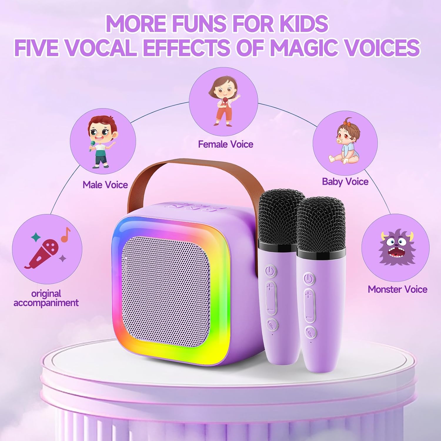 Multi function Karaoke Machine: The karaoke system come with 5 funny magic voice and colorful lights that make a KTV atmosphere, perfect for adding excitement and vitality to any party or gathering, let you and your family and friends have a pleasant karaoke time.