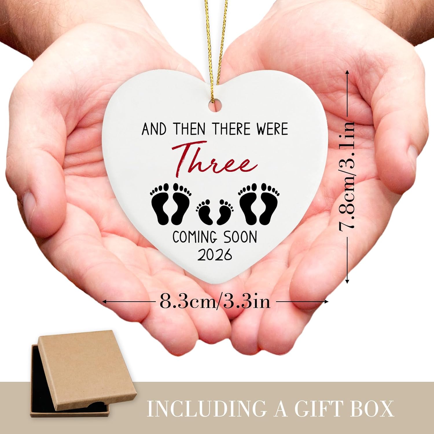 Pregnancy announcement for parents: Your special someone deserves a unique and lasting gift. it’s printed with: “and then there were three coming soon 2026” but is a practical gift that lasts. This ornament is more than just a Christmas decoration, It can also be used as pregnancy announcement gifts, baby shower gifts, new parents gifts for couples, mom and dad to be Christmas gifts, or first time grandparents gifts.